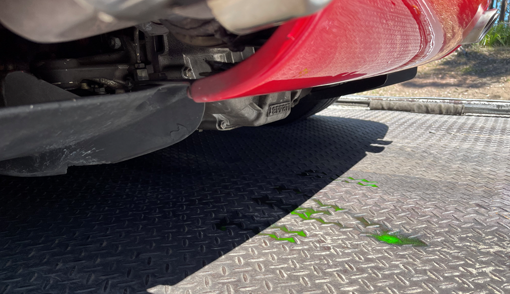 Even on such a short trip onto the trailer, the car was still losing coolant as you can see.