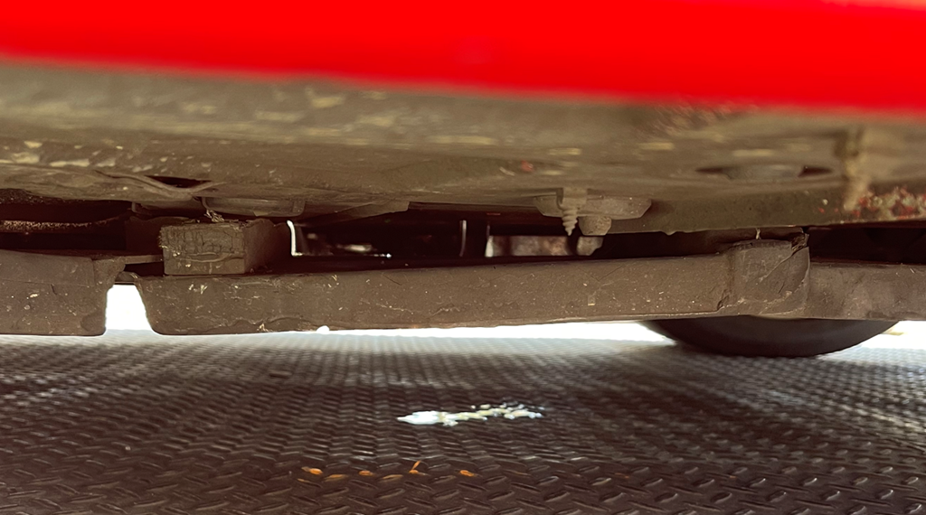 The puddle created, when stationary, is about mid-vehicle. This means the leak is somewhere between the engine and firewall.