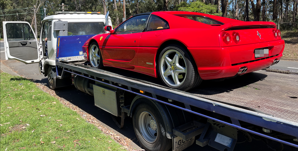 Loading onto a tilt tray is always a nerve racking experience and this time was no expectation. Inching along, holding the car by the clutch is not what these cars are designed for. However, being manual, it is probably much easier that using a F1 gearbox. The worst part is simply not being able to see where to align the wheels and relying on someone else’s hand signals, again, is not fun. But, we got there and up on the trailer she went.