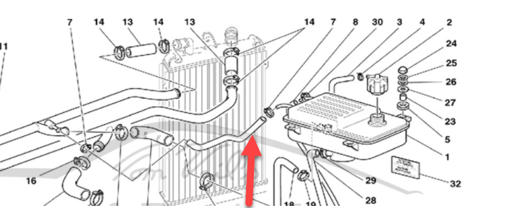 The failed hose ended up being Part Number 161609 (pipe from tank to radiators delivery pipe).