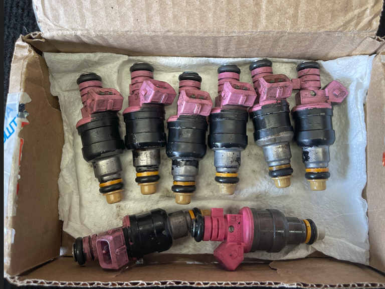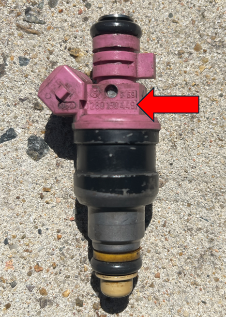 If you take a look at the injectors I was provided you can see the part number on the stem and the housing is pink as shown above.