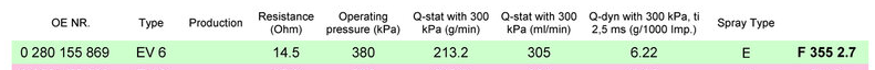 As for the 0280 155 869 injector I am not sure so have asked the production plant for some clarification if this is available/ suitable for a 355.